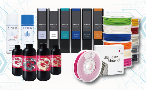 提供3D列印線材、SLA光固化樹脂、SLS列印粉末及真空材料片…等,各式耗材