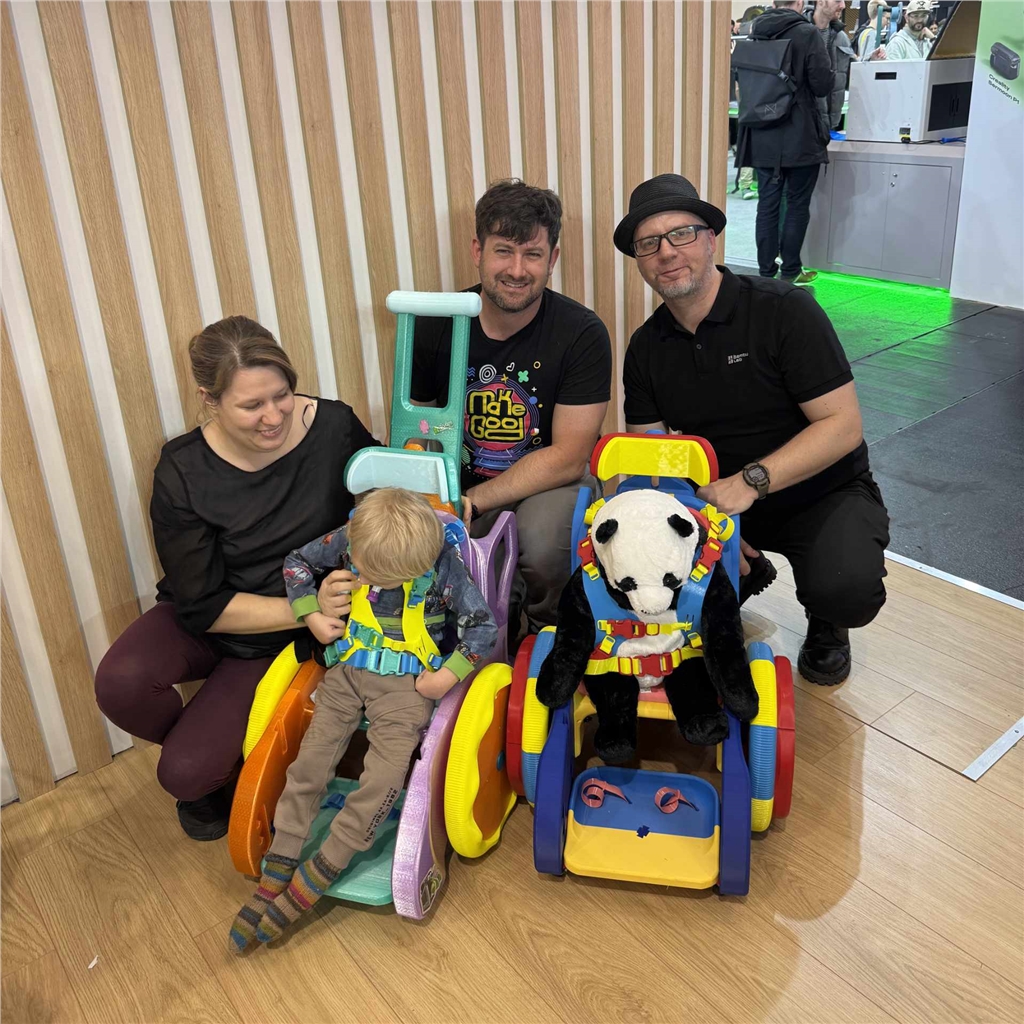 這一點在 Formnext 展會上得到了印證:一戶當地德國家庭帶著患有行動障礙的兒子 Keo 前來拜訪,Keo 正需要一台 TMT,最終順利帶走了其中一把輪椅 —— 這感人時刻的背後,離不開 Bambu Lab 的支持。