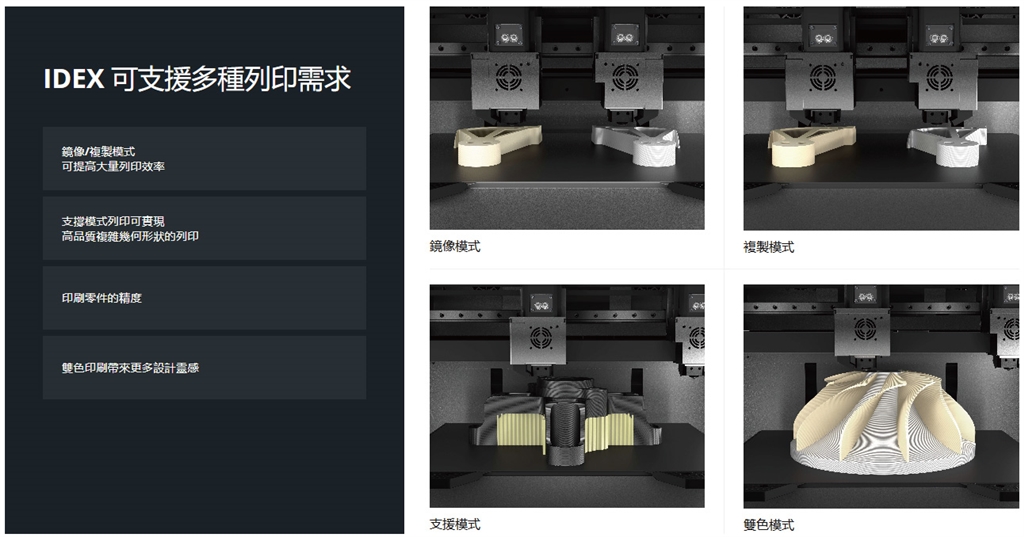 2 噴頭(IDEX 獨立雙噴頭) |