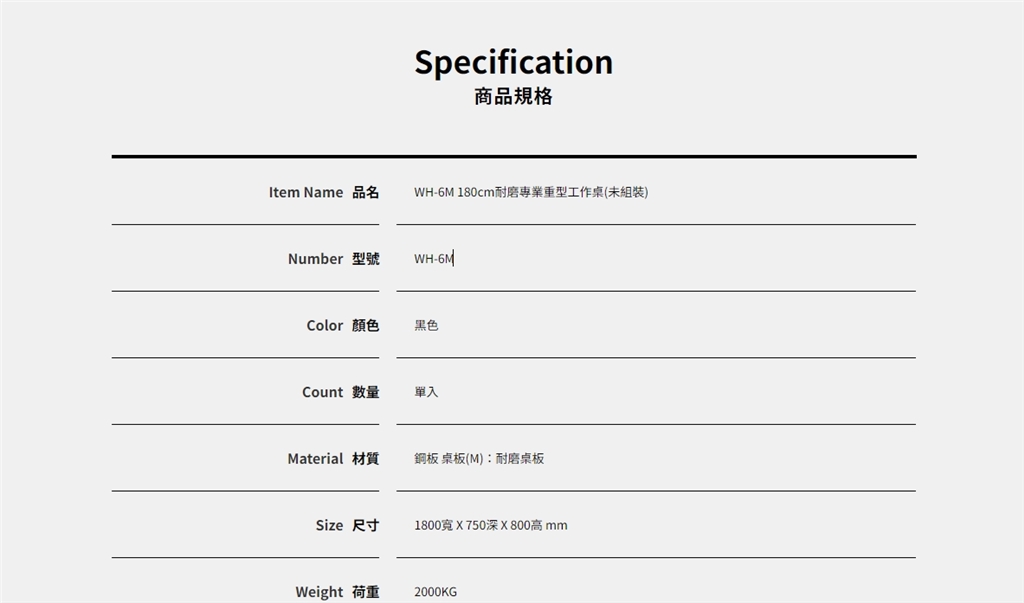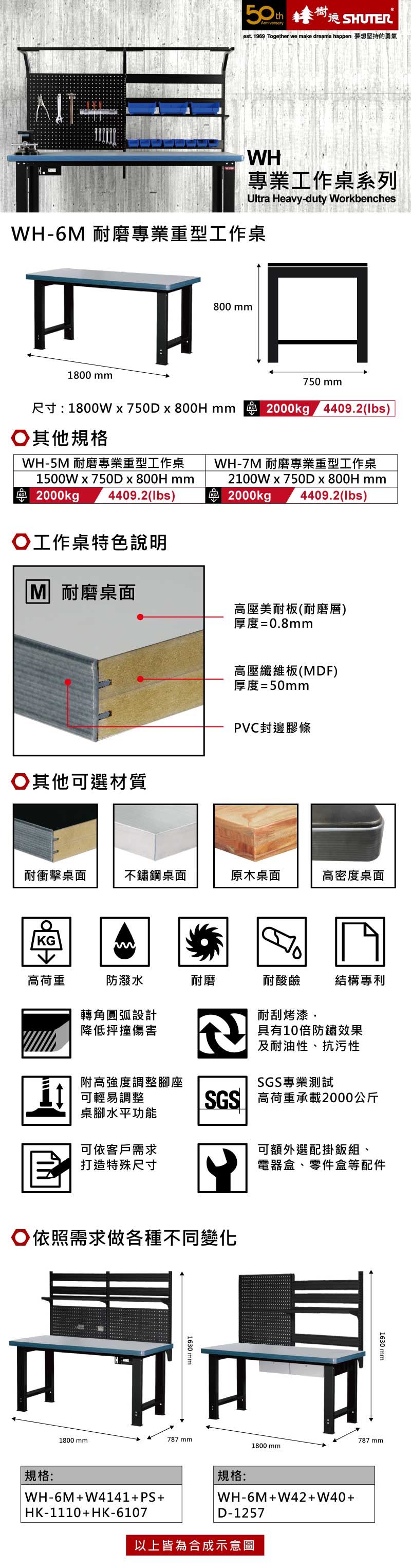 樹德Shuter耐磨專業重型工作桌180cm(含組裝)