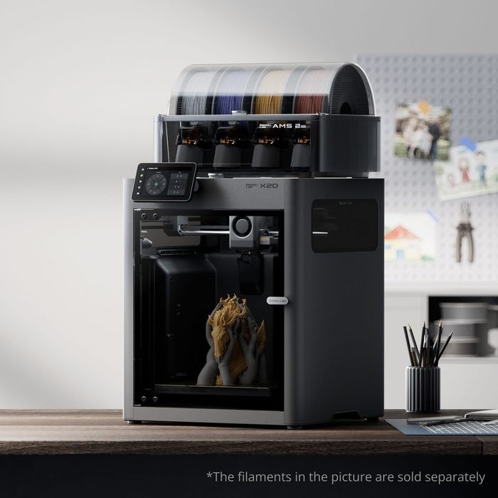 X2D 是 X1C 的全新篇章。它新增了雙噴頭系統,支援最多 25 色列印;配備主動加熱腔(最高溫度 65°C),用於加工工程耗材;搭載伺服擠出機,具備即時流量感應、耗材纏繞檢測功能;擴展了 AI 監控功能,支援即時取景和工具頭攝影機;並支援基於視覺編碼器的運動校準。 X2D 將 X1C 的所有優點進行了改進和進一步提升。
