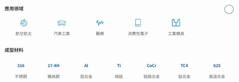 不鏽鋼、模具鋼、鋁合金、鈷鉻合金、鈦合金、純鈦、高溫合金等 |