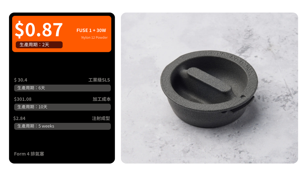 Fuse 1+30W擁有强大的30瓦鐳射規格,以Fuse 1兩倍速度進行生產,仍維持始終如一的卓越列印品質!同時也增加高性能材料如 Nylon 11CF, Formlabs 第一款加入碳纖維的材料。Fuse 1+ 30W,能在一天內完成從設計到生產的全過程,並獲得工業級功能性部件,從而減少停機時間、緩解供應鏈波動並降低合約成本。