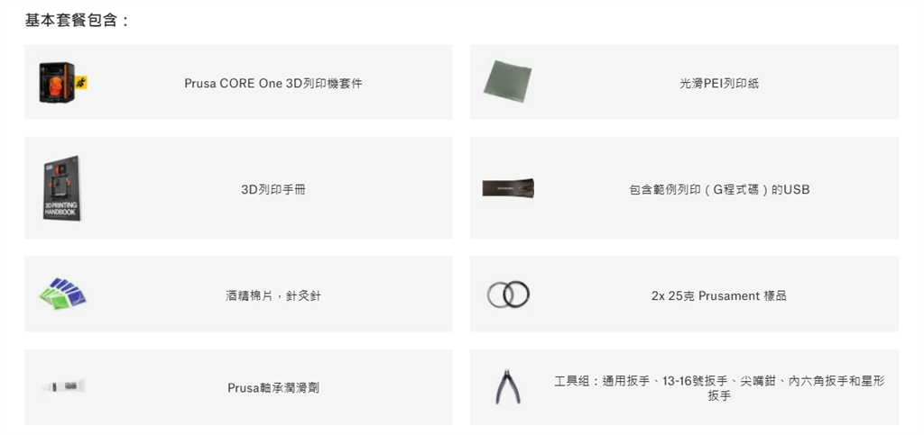 Original Prusa CORE One + 3D列印機 型號 PS0064 品牌 PRUSA 售價 69900(含稅) 僅售已組裝成品。此產品含CORE One高級過濾器。