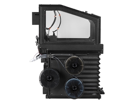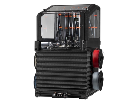 框架採用金屬材質,側邊與上方面板採用 PETG 塑膠。框架上設有安裝元件,可用於安裝各種額外的列印零件、電子元件、攝影機和其他附加元件,並具備整潔的線纜管理功能。