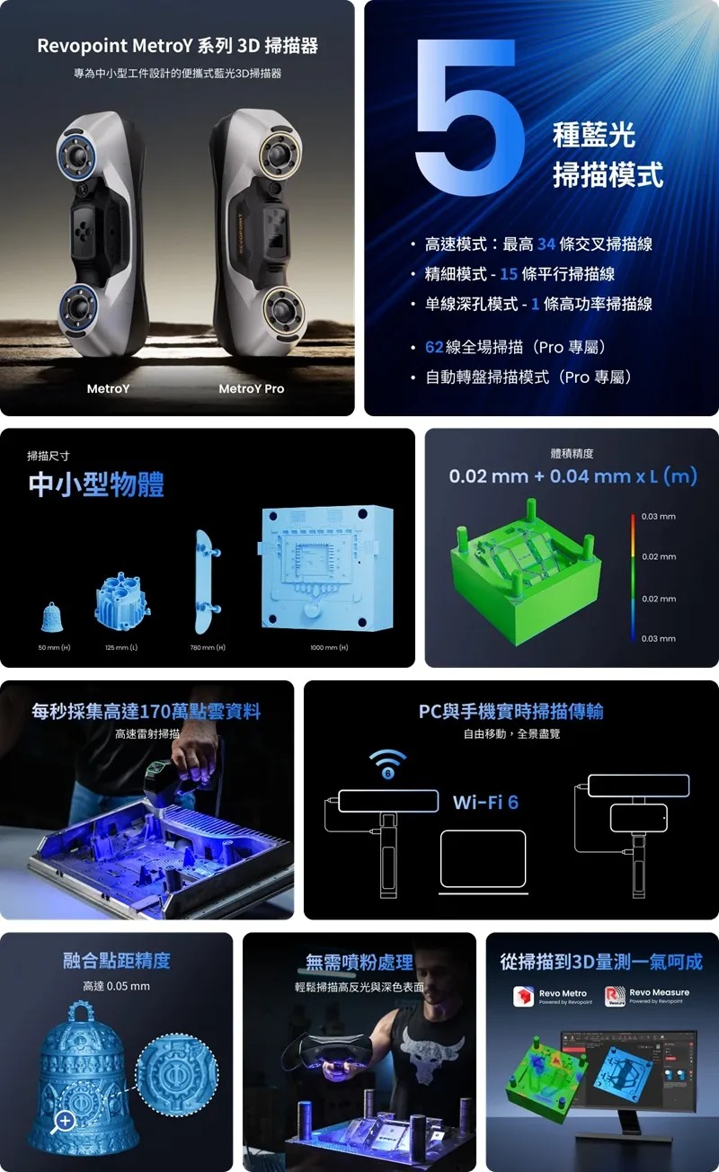 Revopoint MetroY線 雷射工業級 3D 掃描器系列 型號 RP00006 品牌 Revopoint 原價 37900 售價 34850(含稅) 預購只到11/30,12/1恢復原價