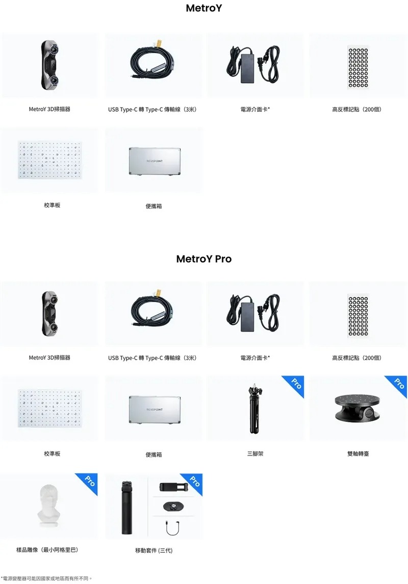 品項 MetroY雷射工業級3D掃描器(標準版) MetroY雷射工業級3D掃描器(Pro版) MetroY雷射工業級3D掃描器(移動套件版)